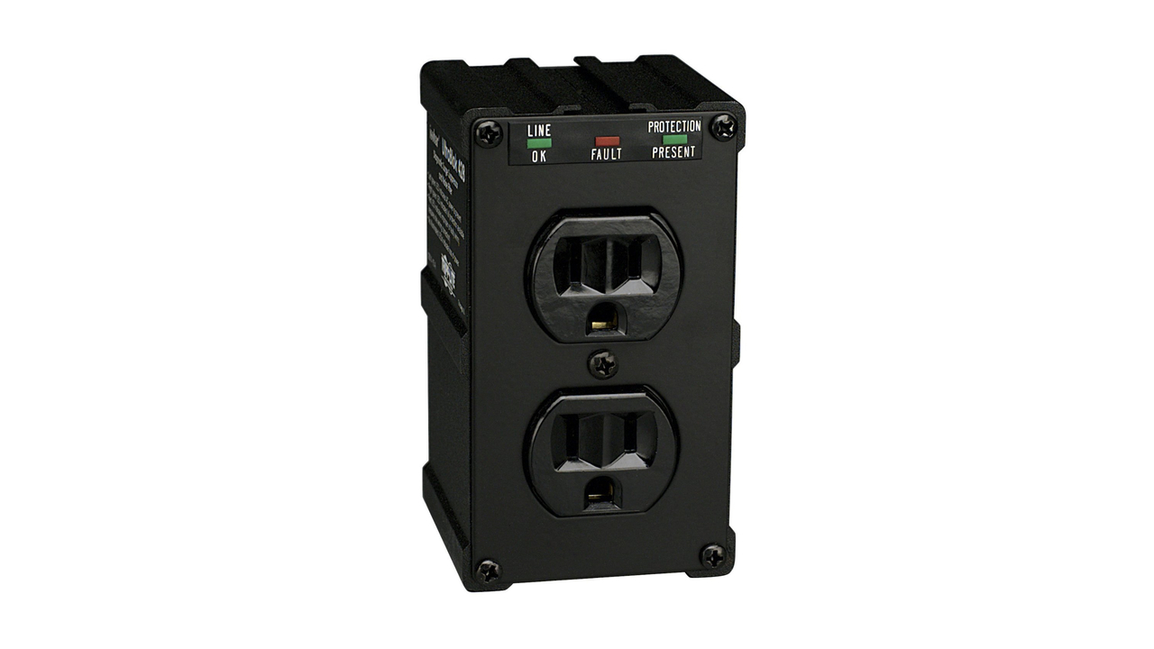 The ULTRABLOK plugs directly into any standard 5-15R wall outlet—ideal for applications where space is limited. A steel spring mounting tab enables the surge suppressor to be secured to the outlet to prevent accidental disconnection.