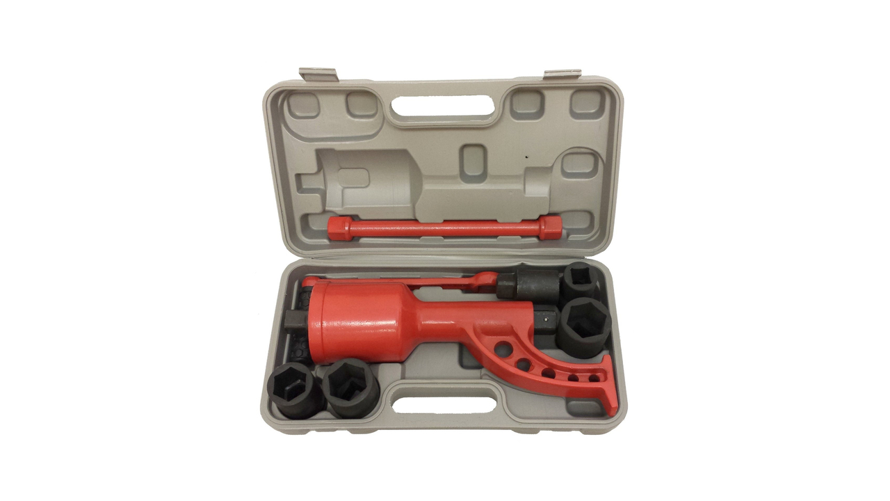 Introducing the Cheater Wrench, a torque multiplier lug wrench that outputs at a 1:78 ratio, allowing you to generate enough force to loosen and remove any lug nut from your truck, trailer, RV, bus, tractor or other heavy duty vehicle. Simply attach the socket to the lug nut, insert the output shaft into the socket, attach the handle to the input shaft and give it a few turns. Do not use an impact gun to turn the input shaft. Just turn it by hand and in no time you will have the lug nut loosened.