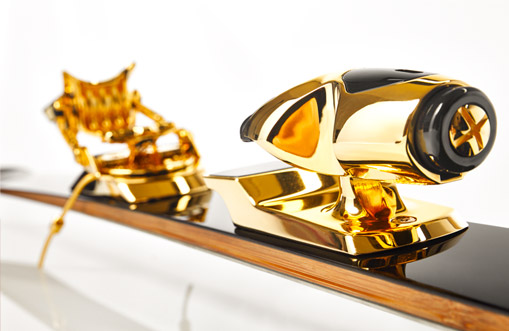 Custom made in Northern Italy, the special edition gold-plated Foil Oro-Nero skis are the finest in luxury alpine gear. Foil was started by Alessandro (Sandy) Marchi who after many years of working at the highest levels of design and production, grew more and more frustrated with what he viewed as the short-term, mass-production mentality of the ski manufacturers.