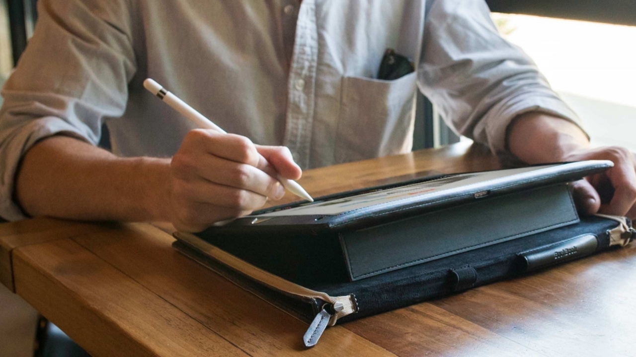 Featuring a built-in kickstand that tilts iPad Pro to a wrist-friendly angle, the BookBook was designed for the artistic-minded and on-screen typers alike. Let the ideas flow naturally from your Apple Pencil onto the retina display, then simply fold the kickstand, stow your Apple Pencil in the built-in holster, pull the dual zippers closed, and safely transport your masterpiece in a case that has the look and feel of a vintage portfolio.