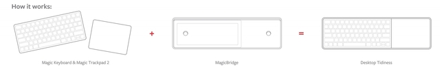 Have you ever wished that your Apple Magic Keyboard and Trackpad 2 were combined into one? With Twelve South's newest accessory, MagicBridge, you can create the streamlined setup you've been dreaming of. Like it's predecessor, MagicWand, the MagicBridge connects your Apple Wireless Keyboard and your Magic Trackpad 2, creating a one-piece control surface that lets you type and swipe faster and more efficiently. When combined, you not only tidy up your desktop but you create one larger keyboard that's more stable and easier to use than the pieces by themselves.