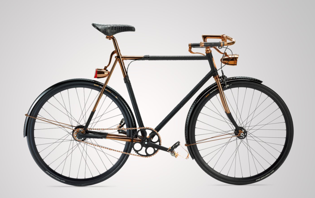 Custom copperplated frame, bars, stem, fork and posts handmade in Detroit, Michigan