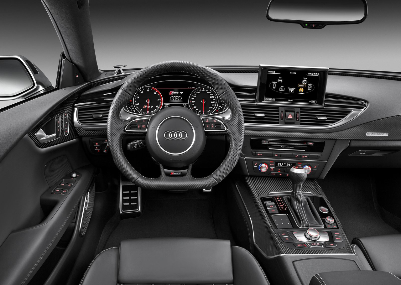 Audi is expanding its RS model lineup: The RS 7 Sportback, which is making its debut at the North American International Auto Show 2013 in Detroit, stands for dynamics at their most beautiful. The large five-door coupe uses a 4.0 TFSI engine producing 412 kW (560 hp). The sprint from zero to 100 km/h (62.14 mph) takes just 3.9 seconds, and the speed governor can be deactivated upon customer request to permit a top speed of up to 305 km/h (189.52 mph). Despite this superior performance, the Audi RS 7 Sportback consumes on average just 9.8 liters of fuel per 100 km (24.00 US mpg).