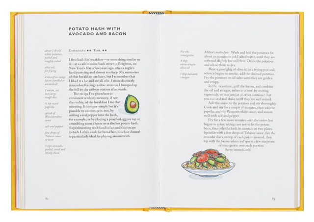 Everything you need to know to assess, understand, and improve a hangover is here: dozens of comforting recipes, very clever graphic tests for analyzing your state of mind, and quizzes for tracking your progress. A good hangover brings its victim to a new state of mind—and one that, when looked at objectively, can be quite fascinating to its host: It can create an increased awareness of the body, a willingness to eat something usually off limits, and a fascination with the mind’s strange acrobatics.