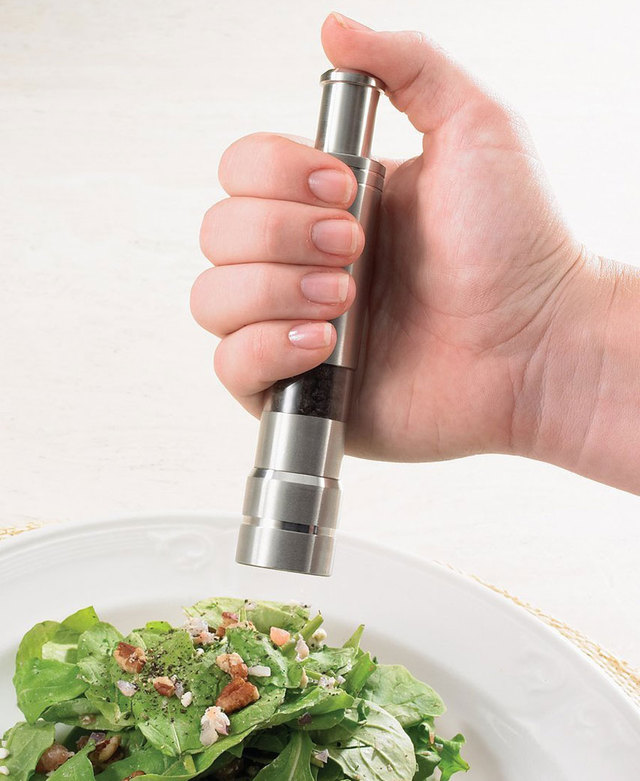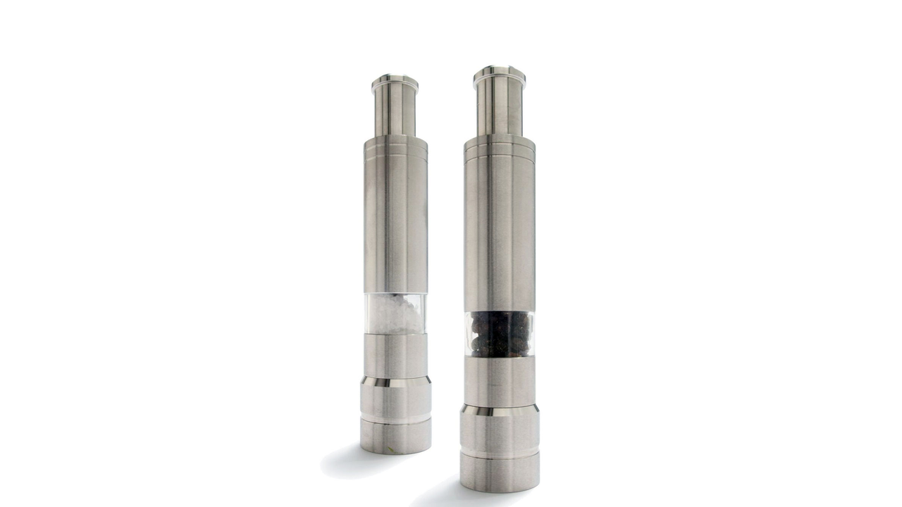 ● 6-inch push-button salt and pepper grinders; operate each mill with just 1 hand