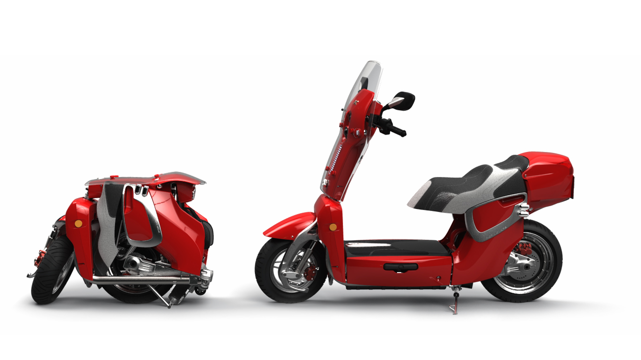 The XOR Motors XO2 is an high performance electric scooter that folds away for easy storage in just 30 seconds. Available in two versions, the XO2 8.0 has a max speed of 120 km/h, range of 75km at 90km/h, charge time of 1-1.5 hrs, and full charge cost of .40€. The XO2 4.0 has a max speed of 45km/h, range of over 100km at 45km/h, and similar charge time and cost.