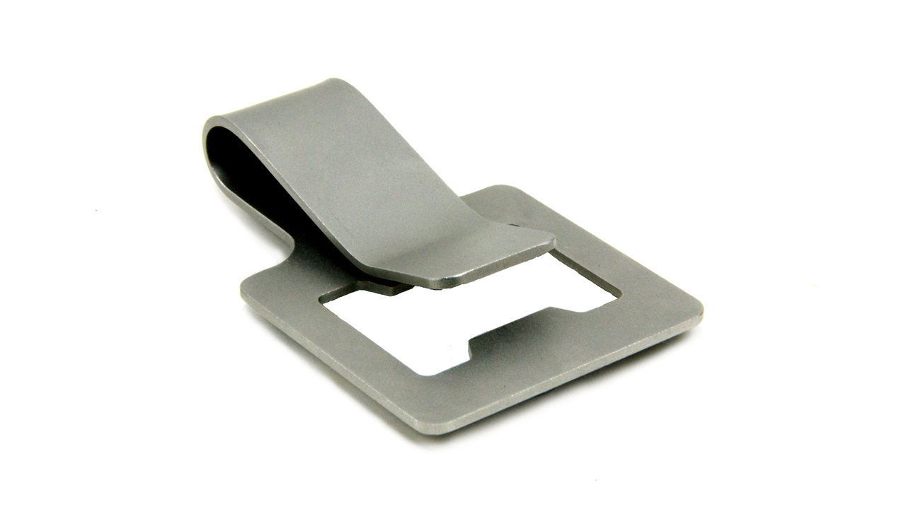 OneKlip is a one-piece modern multifunctional bottle opener with a universal clip feature making it ideal for use in the home or on the go. OneKlip fits in your pocket and can be used as a money clip or it can be left in the kitchen and attached to your refrigerator via the built-in magnet.