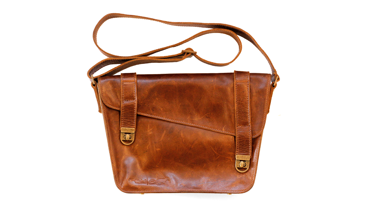 The Kul Rex is Nisnas Industries flagship bag design featuring a wooden spine. The leather messenger style bag can be worn comfortably on your shoulder for a day's commute or it can be attached to your bike frame with special hidden straps. The Rex is the company's largest bag. It will hold an iPad, papers, and books with plenty of room to spare for a day's work or pleasure. The Kul Rex bag is also available with a custom option to fit a 15" laptop.