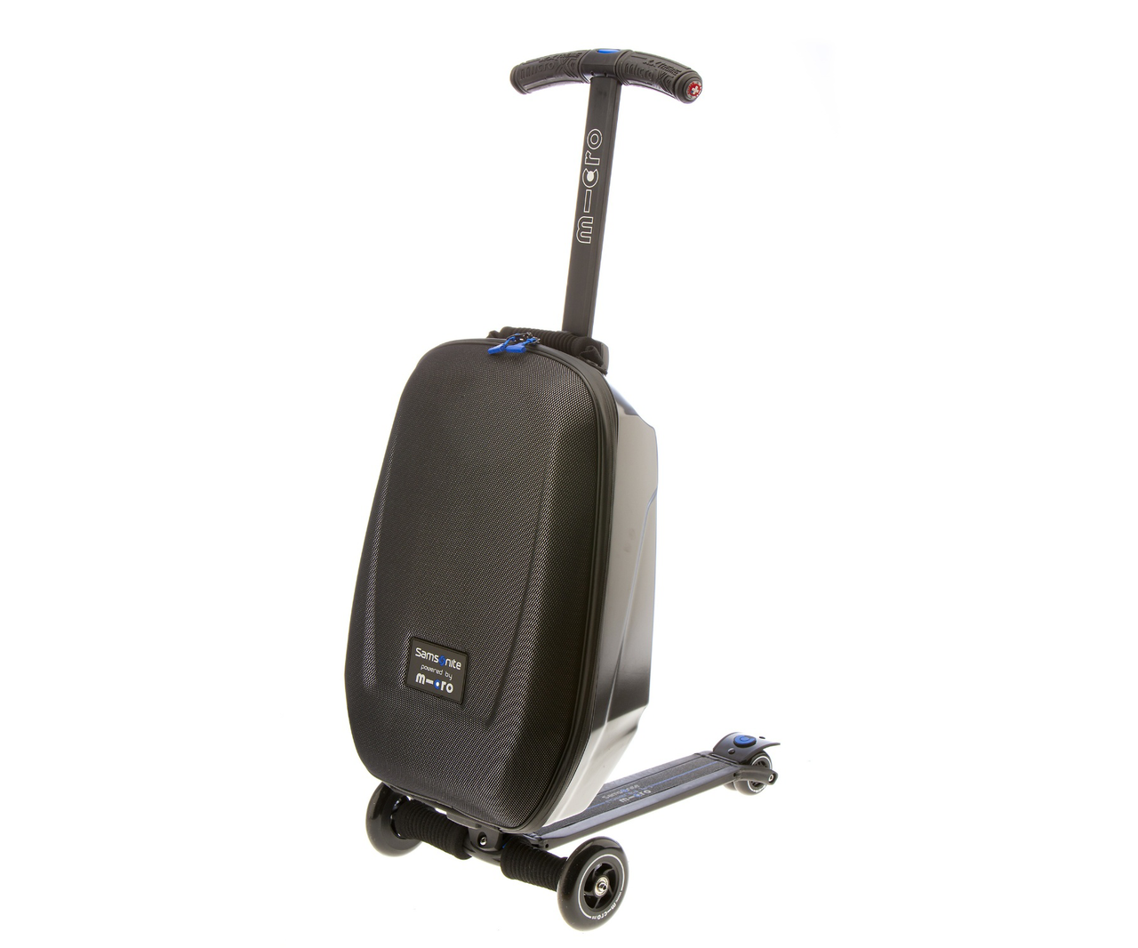Micro Luggage is the innovative new luggage that moves you! A modular luggage system was the vision - the result is an ultra cool case with scooter attached, providing maximum flexibility that lets you Pull, Fold, Ride, and get to the gate on time. The quality hard-shell case has cabin-size dimensions for fast and easy boarding and storage. Thanks to the running board, handlebars and smooth-gliding Italian-made wheels, micro luggage can also be used as a means of transport. The modular structure makes it ideal for use as a carrier bag, trolley and last but not least, as a kickboard with case (the case cannot be dismantled). Be prepared to feel like a rock star as you travel through the airport. This one is strictly for high flyers!