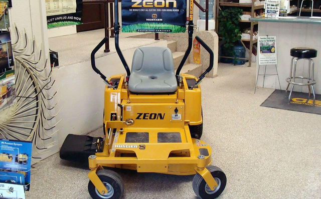 The Hustler Zeon is the first electric zero-turn mower ever introduced to the green industry. Clean, quiet, and simple. No gas to spill, no fumes to pollute and a lot less noise. For a yellow mower, the Zeon is very green! With a welded steel frame and deck, this is a solid and dependable machine that will mow more than an acre of lawn on a single charge. The Zeon is the kind of innovative equipment that Hustler has been producing for over 40 years. The Zeon is durable and gets the job done with ease, all while being as friendly to the environment as it is beautiful on the lawn.