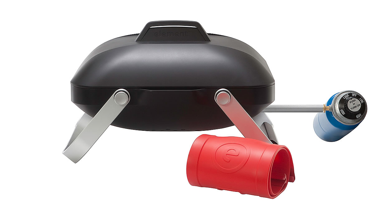 The compact, carry-anywhere Fuego Element Portable gas grill gives you the freedom to grill your favorites wherever you roam--whether it's the beach, a tailgating party, a campsite, or a friend's home. Featuring patent-pending fold-and-lock legs that double as a handle and weighing only 15 pounds, the Element Portable is easy to transport. A stylish red travel band locks the legs in place and an optional shoulder strap attaches to the handle, which frees both hands for carrying other essentials.