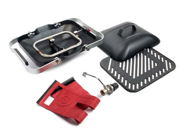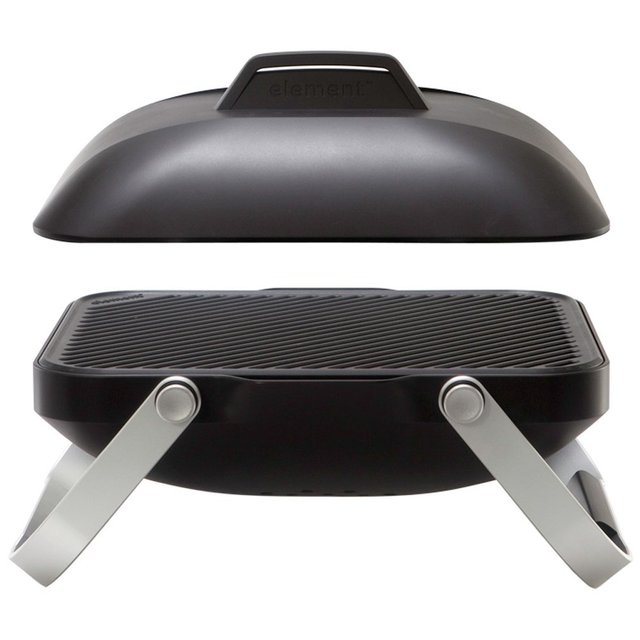 The grill is powered by liquid propane from either 16.4- or 14.1-ounce canisters, and it fires up to 8,000 BTU with a high-low temperature setting of 350 to 650 degrees F. It measures 19 x 12.75 x 9 inches (LxWxH) and weighs 13 pounds. Add an optional flat griddle plate, shoulder strap, and neoprene travel bag to complete your Element Portable grill experience. It's backed by a 1-year limited warranty.
