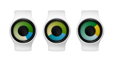The Aurora displays time using two transparent gradient discs, blue color representing the hour and yellow displaying the minute. By overlapping both ... [More]